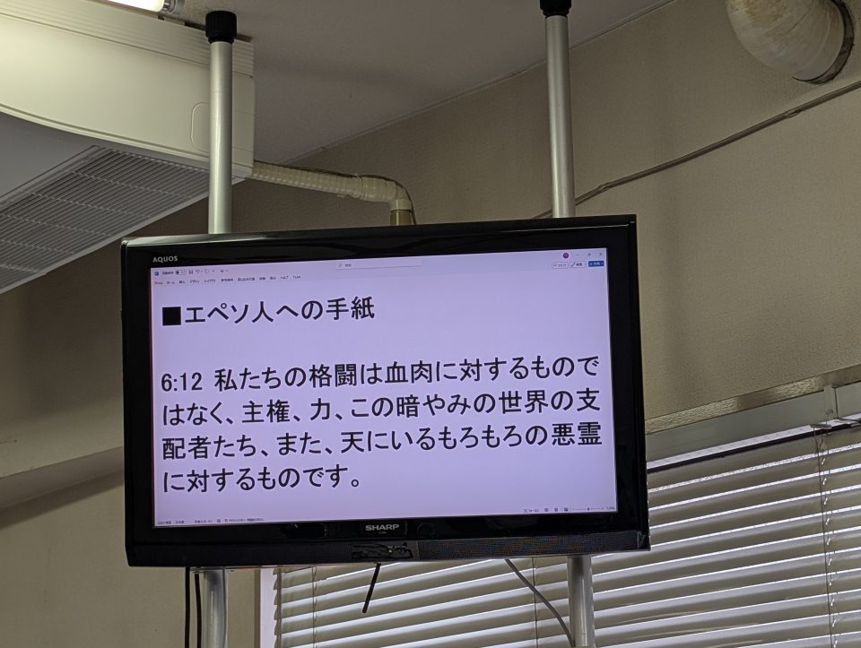 笠原さんが、エペソ6章12節から、語ります。