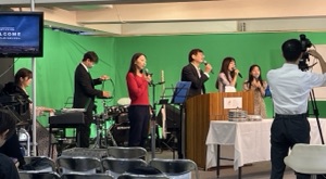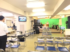 第一礼拝のサウンドチェックが行われています。