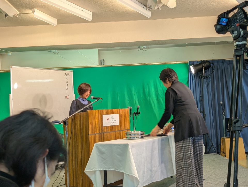 各自で祈った後は、皆で「主の祈り」を祈りました。その後は、献金のときです。