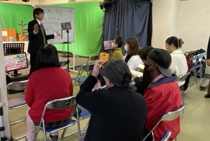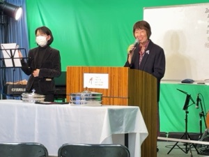 榊󠄀さんが語り、田宮さんが、英語に通訳します。
