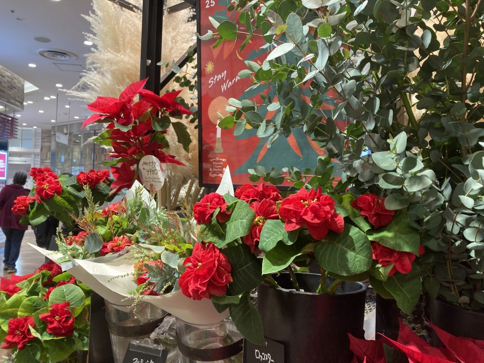 12月中旬になり、フラワーショップにポインセチアが並ぶ時期になりました。