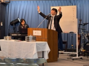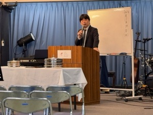 窪田さんが、献金の感謝の、お祈りをします。