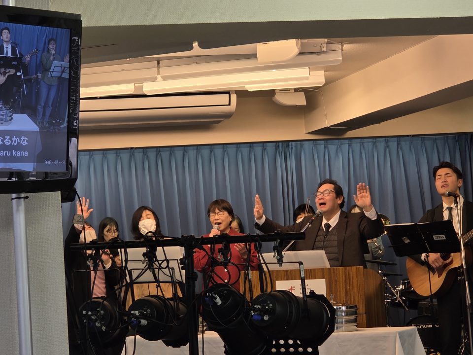 心から賛美します。コーラス左側は、いつみさん、天谷さん、まゆみさん。