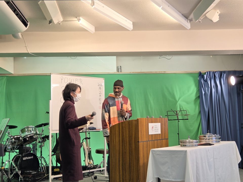 ジミー宣教師が、メッセージです。が、その前に、賛美を一曲皆で歌いましょう、と!