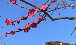 SA休憩で、梅の花が咲き始めていました♪