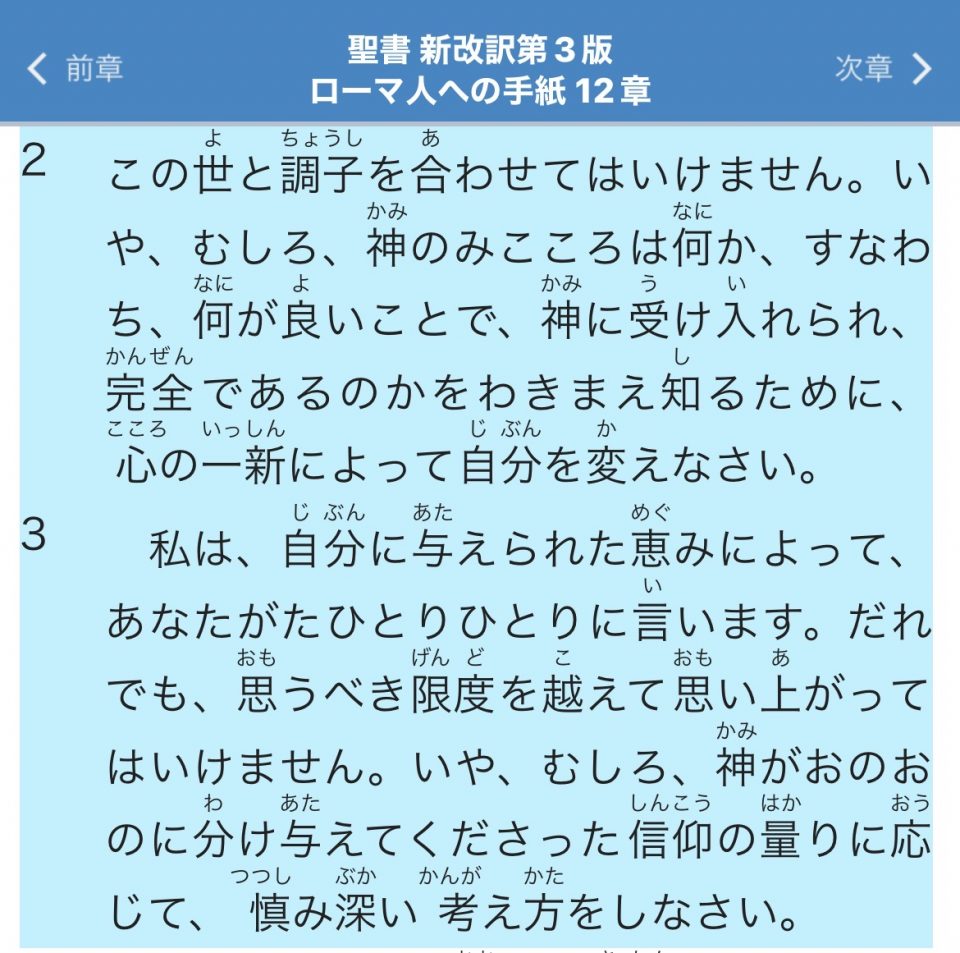 聖書箇所:ローマ人への手紙12章2節3節
